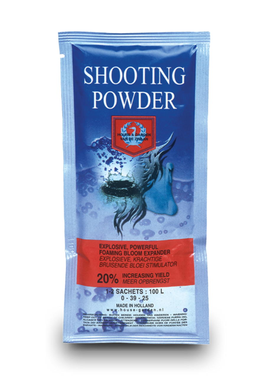 House & Garden Shooting Powder forces your plants into starting a new flowering cycle after the regular cycle has stopped, significantly increasing the fruits’ total weight. The extra yield after applying this agent will surprise even the most seasoned grower, as it actually creates a new layer on top of the existing fruit. Output increases of up to 20% can be reached this way. Use Shooting Powder at the end of the flowering period for the last three weeks.