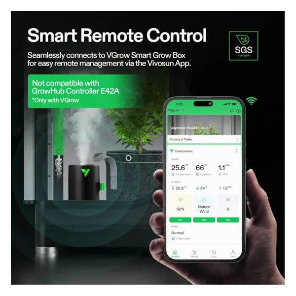 Designed for Smart Grow: Compatible with Vivosun’s VGrow Smart Grow Box and Smart Grow System (SGS) 【Not compatible with GrowHub Controller E42A】; Remotely controllable via the Vivosun app 【only】 when connected to VGrow